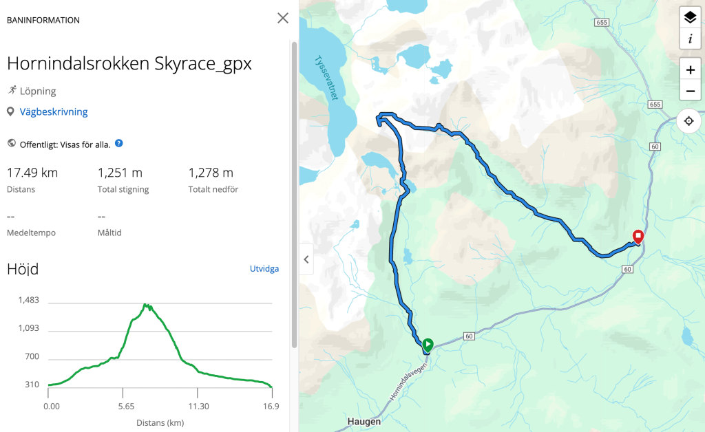 Rokkeråsa is 1,3 km long with an elevation gain of 506 meters (an avrege gradient of 38,8%) through technical, loose terrain that involves some scrambling.